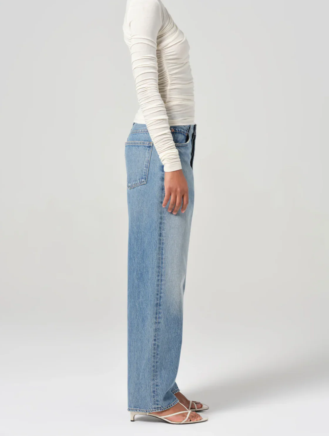 A note from MARNE - The fit is true to size. That being said. If purchased in your true size, it is intended to sit slightly lower on the hip with an overall baggy fit. If you prefer a closer fit, you can size down. Doing so will move the rise higher on your hips and provide a closer fit to your body. The wash has an incredible look and is very soft.